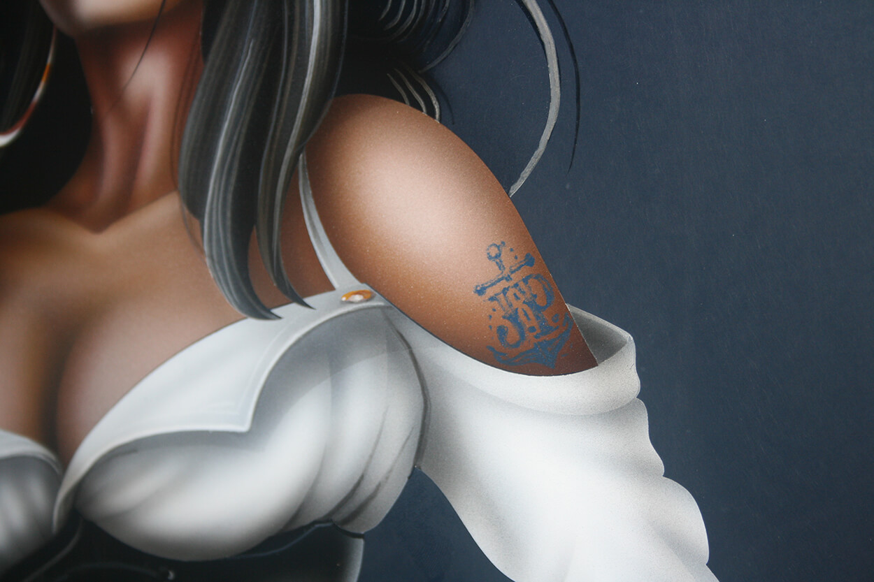 Bonny Read Harbour Road BVI Boat Transom detail female airbrushed handpainted