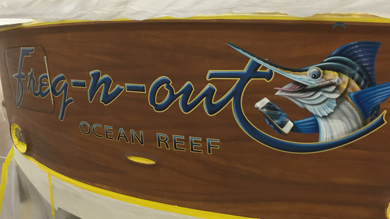 Freq n out Ocean Reef Boat Transom illustration airbrush close up