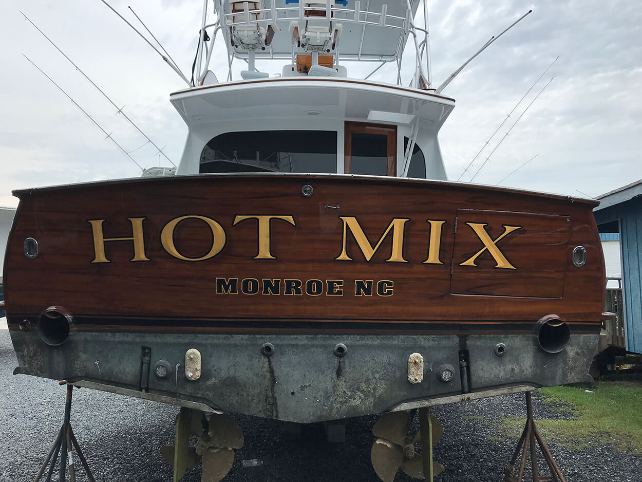 Hot Mix Monroe North Carolina Boat Transom spencer boatyard name lettering