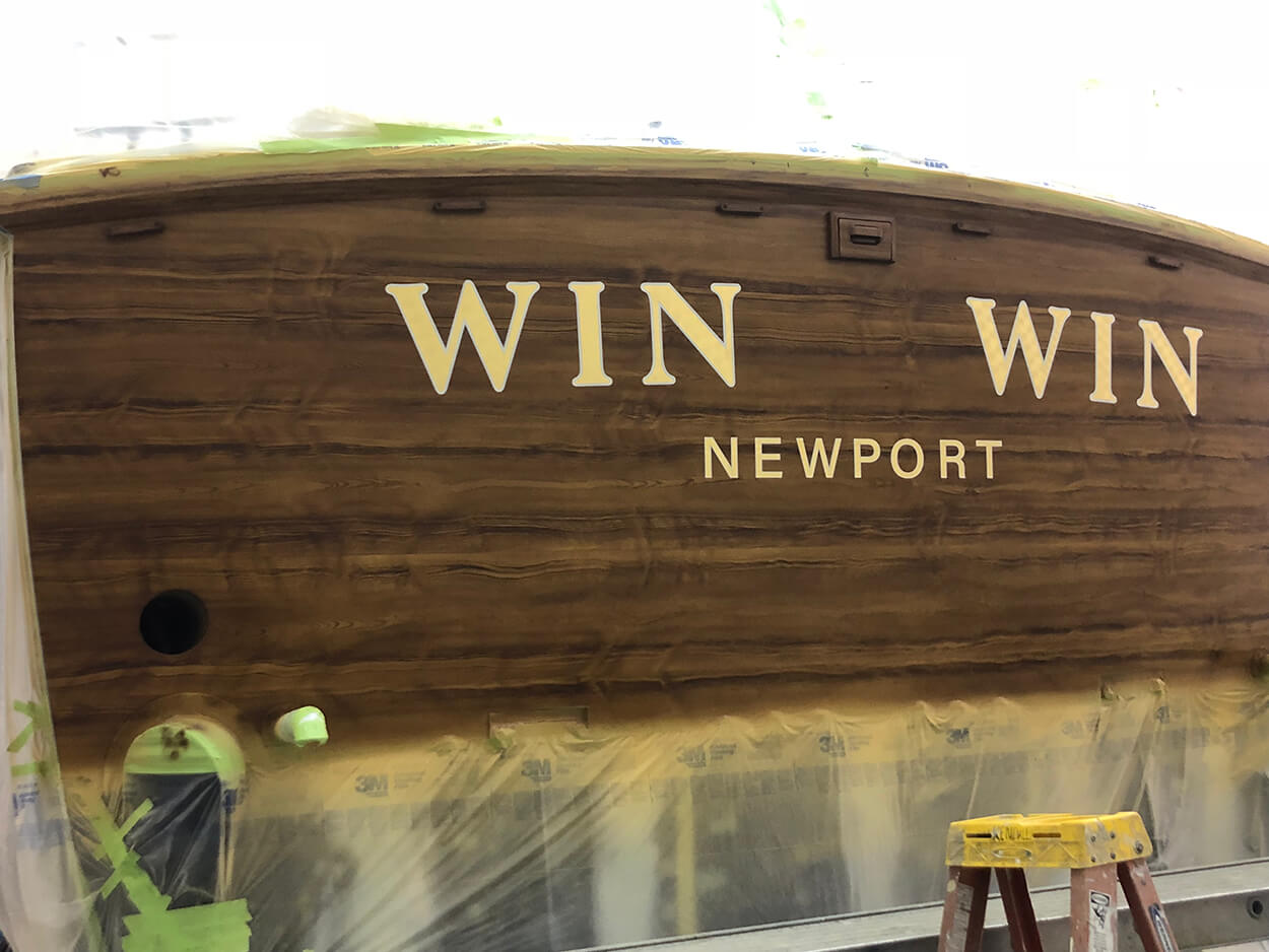 Win Win Newport Rhode Island Faux Teak straight view transom wooden